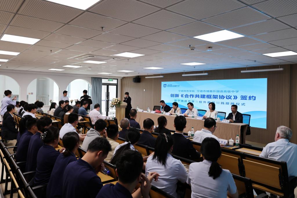 为深入贯彻《教育强国建设规划纲要》,践行“深化职普融通、产教融合”要求,落实“高校-中学协同发展”路径,服务区域教育高质量发展,10月23日上午,我校与宁德市博雅外国语高级中学在博雅外国语高级中学合班教室举行《合作共建框架协议》签约暨校外教学实践授牌仪式。副校长颜桂炀、副校长陈旺玉,蕉城区人民政府党组成员、副区长钟玲玲,蕉城区教育局党组书记、局长黄青松,宁德市博雅外国语高级中学董事长林德链等出席活动。
