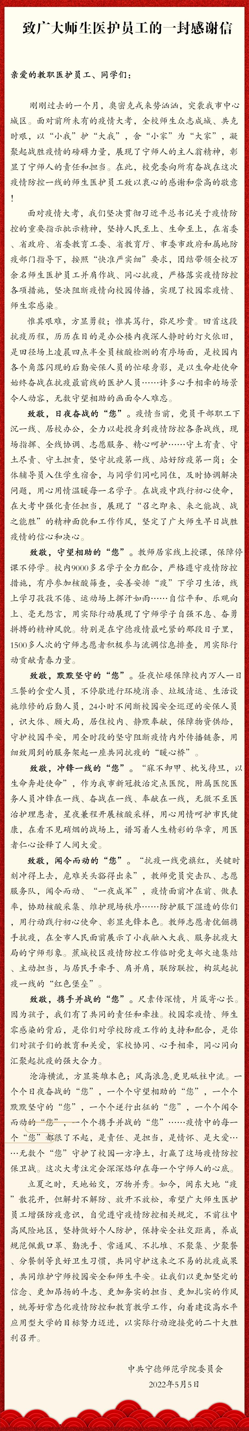 致广大师生医护员工的一封感谢信