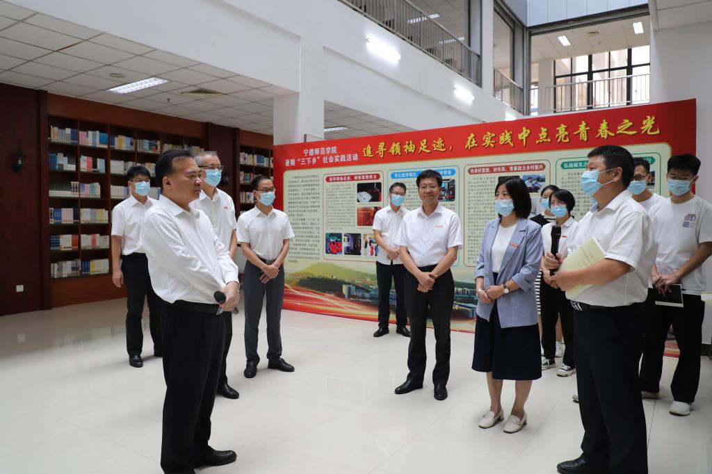 省领导一行查看了学校疫情防控情况,实地考察了闽东之光教育基地的畲族文化教育中心和闽东红色文化教育中心,并就如何更好地学习研究传播习近平新时代中国特色社会主义思想、扎实开展教学科研和社会实践、做好校园疫情防控工作等重要工作与我校师生代表亲切交流。