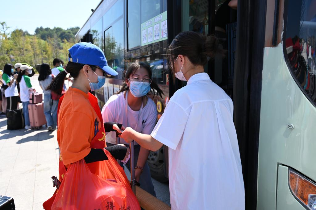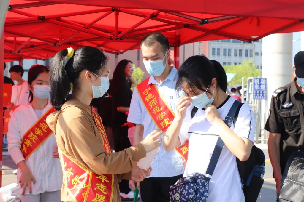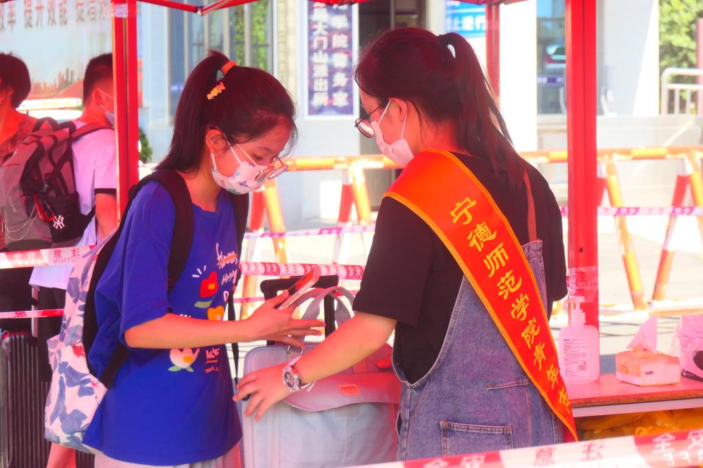 迎新期间,学校根据疫情防控要求进行了周密的部署。在宁德动车站、汽车站设置党员志愿者服务点开展接站服务,登记并核对完信息后组织学生乘坐学校统一安排的接送车。在校门口完成体温检测、查验健康码行程码、行李消毒、更换口罩等程序后乘坐校园摆渡车回到宿舍,并组织全体新生参加校内核酸检测。因家长不能进入校园,学校在校门口一侧贴心设置了休息区供应茶水,为家长朋友们送去一份清凉。