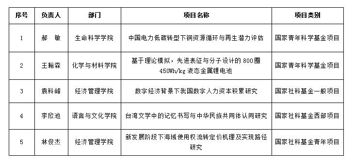 近日,国家自然科学基金委、全国哲学社会科学工作办公室公布了2022年度国家自然科学基金、国家社科基金项目评审结果,我校共获批国家基金项目5项,其中国家自然科学基金项目2项、国家社科基金项目3项。