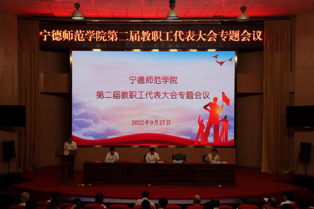 9月27日,我校第二届教职工代表大会专题会议在图书馆报告厅顺利召开。会议专题审议《宁德师范学院章程(修订稿)》。校领导魏远竹、江潮炳、颜桂炀、陈旺玉出席会议。魏远竹作《关于<宁德师范学院章程(修订稿)>的说明》,江潮炳主持大会。170名正式代表参加大会。