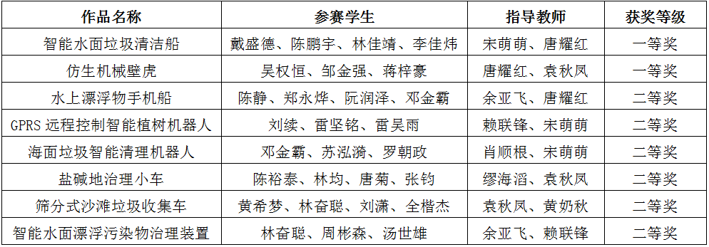 我校学子在第十届全国大学生机械创新设计大赛福建赛区预赛暨第十五届福建省大学生机械创新设计大赛的获奖名单