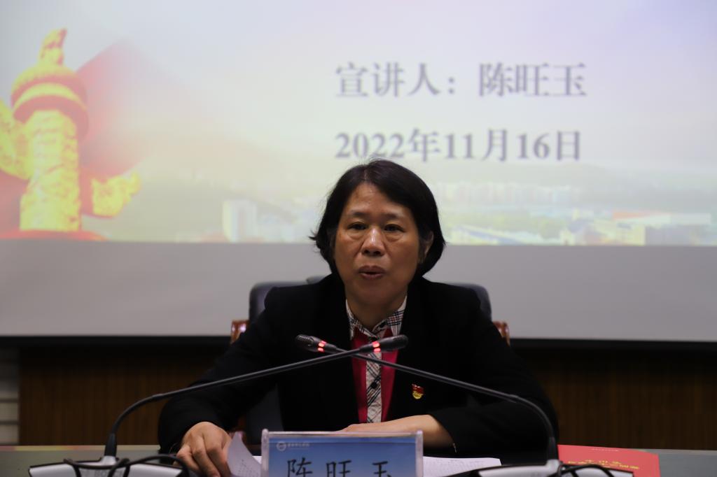 校长魏远竹、党委副书记江潮炳、副校长颜桂炀、副校长陈旺玉等校领导紧紧围绕党的二十大精神,结合分管领域和学校实际,面向分管部门和联系的二级学院全体教职员工及学生代表开展深入浅出的宣讲,引导广大党员干部、师生员工深刻认识党的二十大的重大历史意义,深入领会党的二十大作出的重大论断,进一步统一思想认识、明确目标方向、汇聚行动力量。