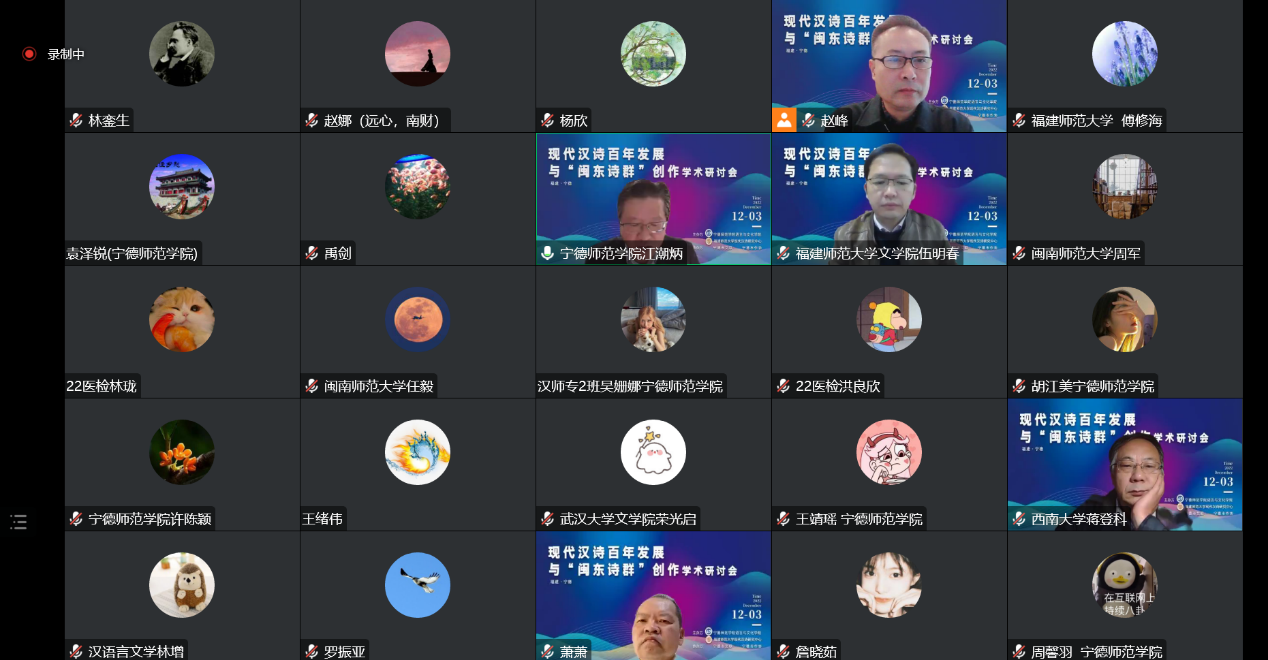 12月3日,由我校语言与文化学院、福建师范大学现代汉诗研究中心联合主办,宁德市文联、宁德市作家协会协办的现代汉诗百年发展与“闽东诗群”创作学术研讨会在线上顺利召开。校党委副书记江潮炳线上出席开幕式并致辞,国内外专家学者、师生代表近300人线上参加研讨会。