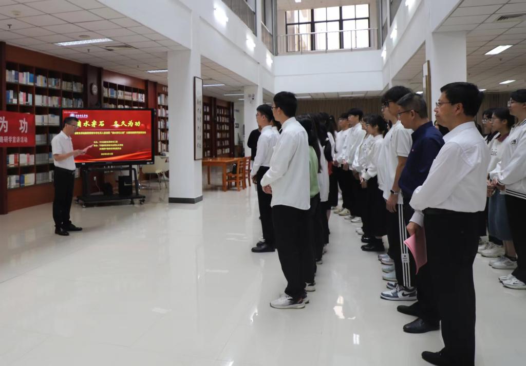 为推动我省青年群体深入学习贯彻习近平新时代中国特色社会主义思想,推动党的创新理论入脑入心,根据省委教育工委统一部署,5月12日下午,福建教育系统新思想青年学生百人宣讲团“滴水穿石之路”主题线路研学宣讲活动在我校图书馆正式启动。校党委副书记江潮炳出席并致辞,马克思主义学院院长游国斌为“滴水穿石之路”主题线路研学宣讲活动授旗,党委宣传部、学工部(处)、团委,马克思主义学院等部门负责人,福建教育系统新思想青年学生百人宣讲团“滴水穿石之路”主题线路研学宣讲员、指导老师,以及学校青马班、读书社学员代表参加活动。