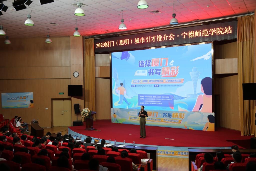 招聘会当天,“选择厦门·书写精彩”厦门(思明)城市品牌引才推介会在我校图书馆报告厅同时举行,厦门市思明区人社局相关负责人介绍了厦门的经济发展、产业优势、生活环境、人才政策等,热情邀请毕业生毕业后选择厦门就业,书写人生华丽篇章。推介会现场座无虚席,气氛热烈,备受关注。