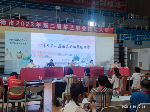 5月20日,由我校及宁德市人力资源和社会保障局等6家单位联合主办的宁德市第二届茶艺职业技能大赛在我校成功举办。此次活动旨在贯彻落实习近平总书记“茶产业、茶文化、茶科技”统筹发展的重要论述,大力弘扬劳模精神、工匠精神,推进我市茶产业高技能人才队伍建设。来自宁德9个县市的10支代表队,35名茶艺师同场竞技,在两天的比赛中,展现出扎实的基本功和精湛的茶艺技术。