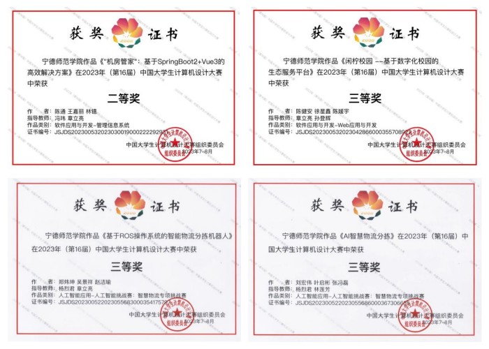 我校信息与机电工程学院教师联合中科曙光产业学院大数据工程师组成“双师双能型”师资队伍,组织多支学生队伍参加大赛。参赛作品中由信机院章立亮、冯玮老师指导,学生陈通创作的《"机房管家":基于SpringBoot2+Vue3的高效解决方案》项目荣获国家级二等奖;由杨烈君、章立亮老师指导、学生郑炜坤、吴景祥、赵洁瑜共同创作的《基于ROS操作系统的智能物流分拣机器人》荣获国家级三等奖;由杨烈君、林莲芳老师指导,学生刘宏伟、叶启彬、张冯磊共同创作的《AI智慧物流分拣》荣获国家级三等奖;由章立亮、孙登辉老师指导,学生陈健安、徐星鑫、陈媛宇共同创作的《闲柠校园——基于数字化校园的生态服务平台》荣获国家级三等奖。