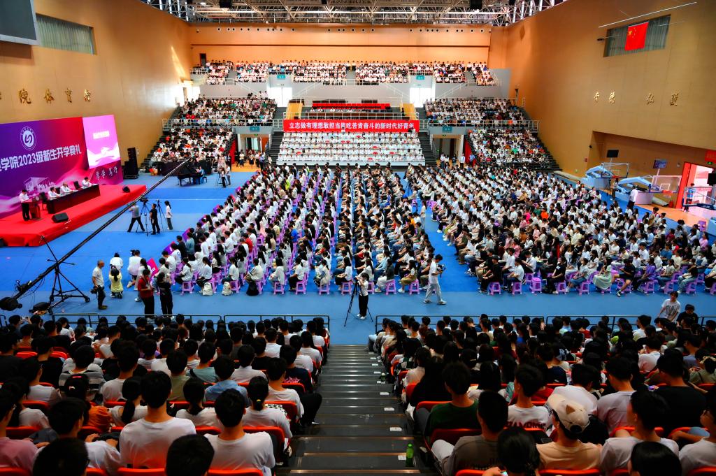 各二级学院、直属附属市医院党政负责人,各部门负责人,教职工代表、新生辅导员及学生家长代表现场参加典礼。典礼还开通了线上直播,4000多人次参加开学典礼。