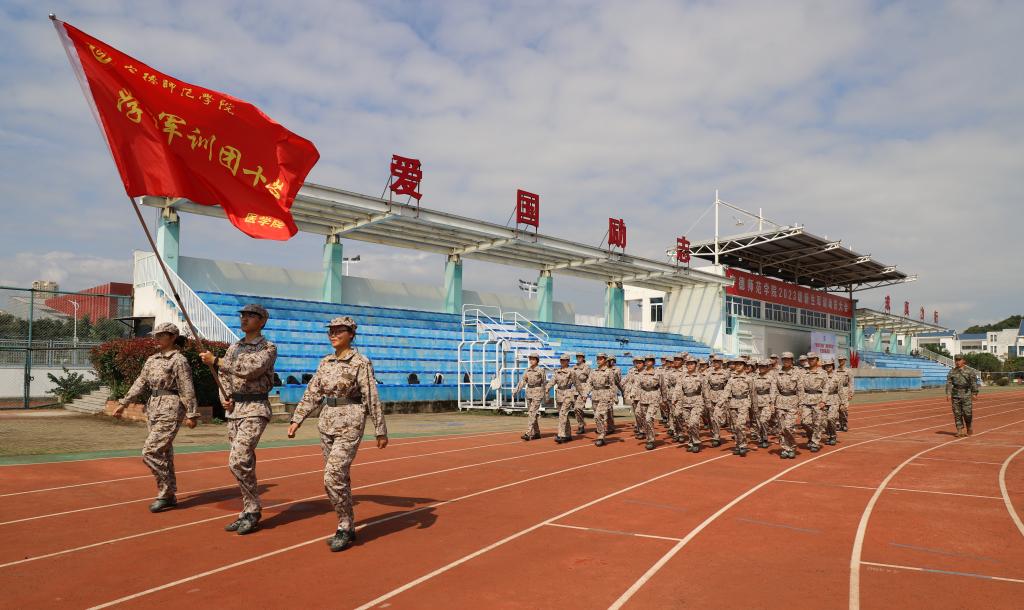 据悉,本次军训为期21天,2650余名新生分60个训练营开展,除常规训练内容外,增加轻武器模拟射击、战术低桩网障碍等军事体验科目,并首次组织行军拉练和红色教育活动,举办禁毒反诈、医疗救护、消防安全进军训等活动。64名教官承担带训任务,其中我校退役军人志愿服务队学生教官28名,他们用昂扬的精神风貌和过硬的军事素质成为军训场上一道独特的风景线。通过创新和丰富军训活动形式和内容,取得良好的训练和教育成效,受到全体参训学生的欢迎。