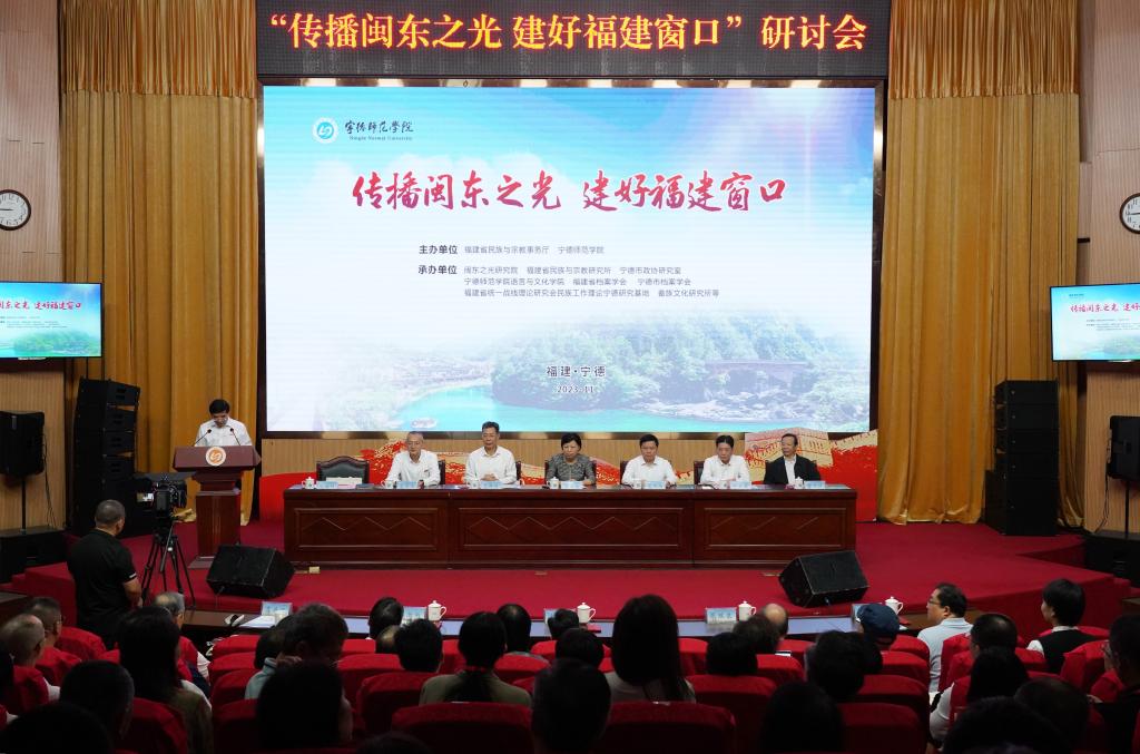 为全面贯彻落实党的二十大精神和中央、省委民族工作会议精神,深入学习贯彻习近平总书记关于加强和改进民族工作的重要思想,深入践行习近平总书记关于把“闽东之光”传播开去和“努力把福建建设成为中华民族团结进步的窗口”的重要嘱托,11月3日至5日,我校与福建省民族与宗教事务厅联合主办的“传播闽东之光 建好福建窗口”研讨会顺利召开。福建省第十三届人大常委会副主任、党组书记雷春美,福建省民族与宗教事务厅党组书记、厅长兰明尚,宁德市政协党组书记、主席兰斯琦,宁德市委常委、宣传部部长叶其发,宁德市人大常委会原主任钟雷兴,校党委书记夏良玉、校长魏远竹、校党委副书记江潮炳出席开幕式。