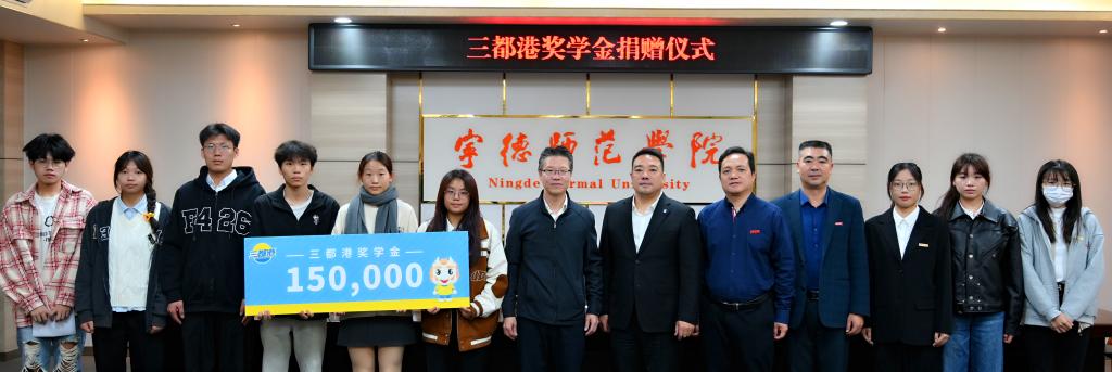 捐资助学是善举,兴学育人是美德。11月13日上午,宁德师范学院“三都港奖学金”捐赠仪式在行政楼二楼会议室举行。校党委副书记江潮炳出席捐赠仪式。三都港海洋食品有限公司总经理尤信铃,中国水产科学研究院东海水产加工所加工室主任郭全友、助理研究员蒋中权,学工部(处)长毛茂峰,生命科学学院党委书记张秋良、院长阮少江、院党委副书记王楠楠、学院全体辅导员及学生代表参加捐赠仪式。仪式由张秋良主持。