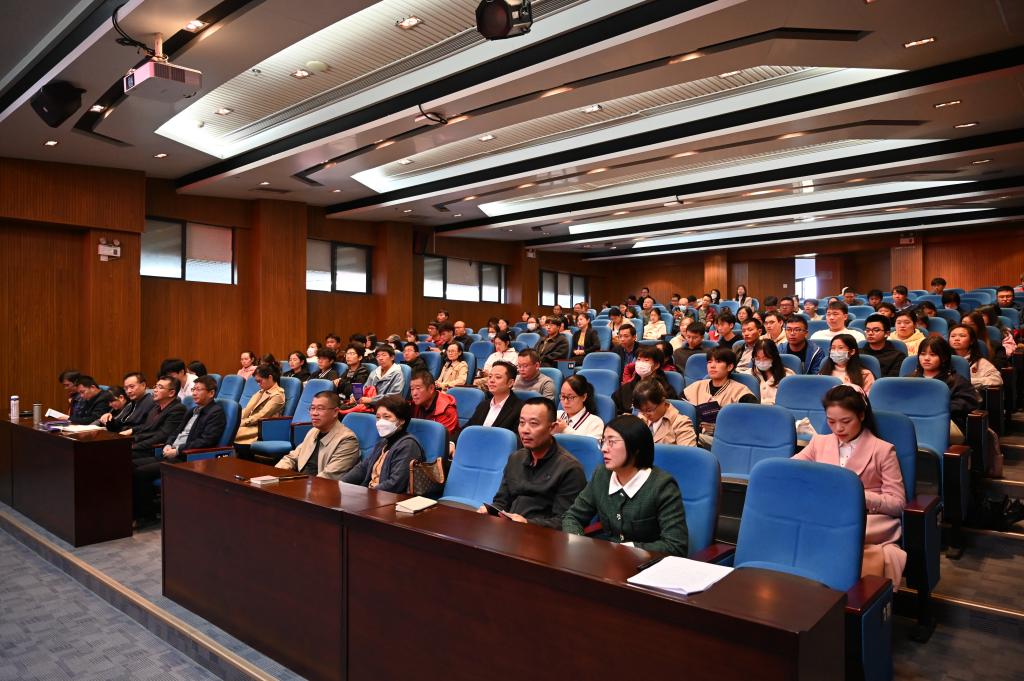 宣传部、学生工作部(处)、校团委等部门负责人,各二级学院院长、分管科研副院长、科研秘书,附属市医院医护员工代表,师生代表以及科研处全体人员等100余人参加启动仪式。