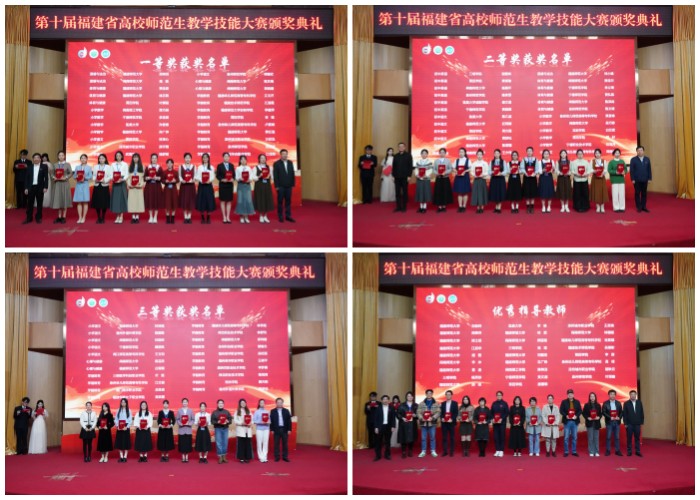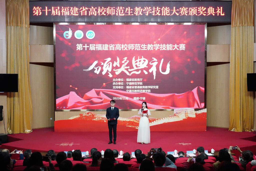11月24-26日,由福建省教育厅主办、宁德师范学院承办的第十届福建省高校师范生教学技能大赛在我校顺利举行。26日上午,本次大赛颁奖典礼在我校图书馆学术报告厅举办,福建省教育厅党组成员、副厅长李绚,福建省教育厅学生工作处处长李俊玮、二级调研员游金茂,我校校长魏远竹、副校长颜桂炀出席并为获奖选手颁奖。
