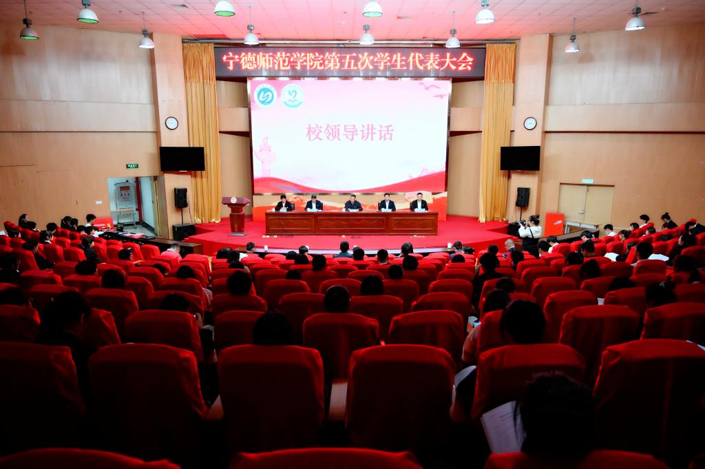 在全团深入开展面向广大团员和青年学习贯彻习近平新时代中国特色社会主义思想主题教育之际,11月28日下午,宁德师范学院第五次学生代表大会在东侨校区图书馆报告厅胜利召开。校党委副书记江潮炳出席会议并讲话,团市委副书记陈光华、校学生工作部(处)部(处)长毛茂峰、校团委副书记李成皓,各二级学院党委副书记,学工办主任以及148名学生代表参加会议。