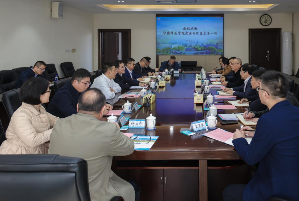 1月4日下午,校党委书记夏良玉、校长魏远竹、副校长颜桂炀带领人事处、科研处、医学院、附属宁德市医院等单位负责人赴福建医科大学交流学习,商谈具体合作事宜。福建医科大学党委书记陈星、校长林旭、副校长王世卾出席座谈会。