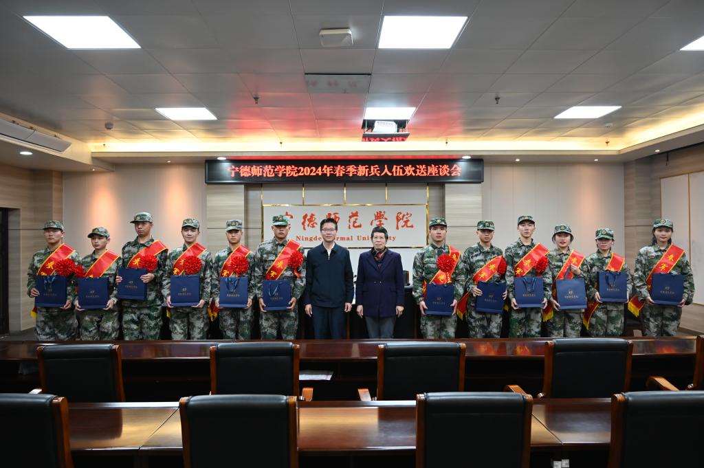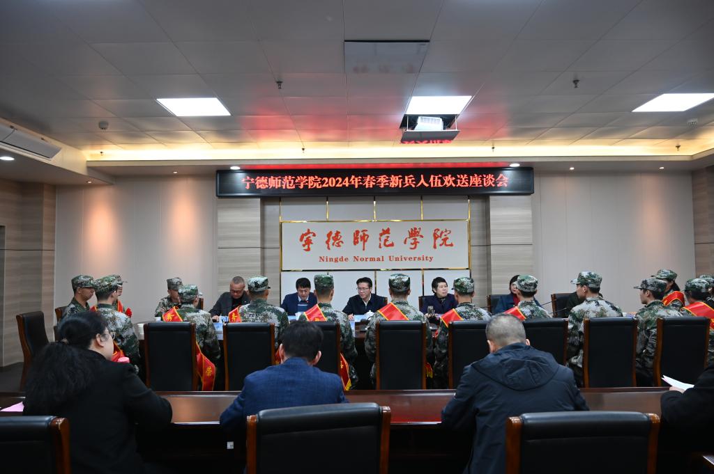 3月13日下午,我校在行政楼第二会议室召开2024年春季新兵入伍欢送座谈会。校党委副书记江潮炳、副校长陈旺玉出席会议。学生工作部(处)、保卫处相关负责人,入伍新兵所在二级学院分管学生工作负责人、在校退役复学大学生代表、入伍新兵代表、退役老兵代表参加欢送座谈会。