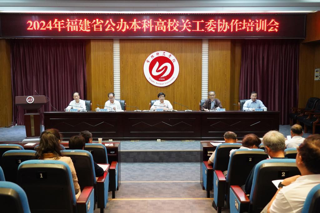 4月15-17日,我校承办福建省教育系统关工委主办的全省公办本科高校关工委建设工作推进培训会,会议聚焦公办高校关工委建设,探索公办高校关工委工作发展新路径。福建省教育系统关工委副主任陈晃、省教育系统关工委办公室副主任朱有杯、省教育系统关工委秘书黄建玉,我校校长魏远竹、校关工委常务副主任谢仲榛,《福建教育五老说》栏目组编辑曾欣,宁德市关工委副主任黄平生、市教育系统关工委常务副主任陈居纯,福建省公办本科高校代表参加会议。