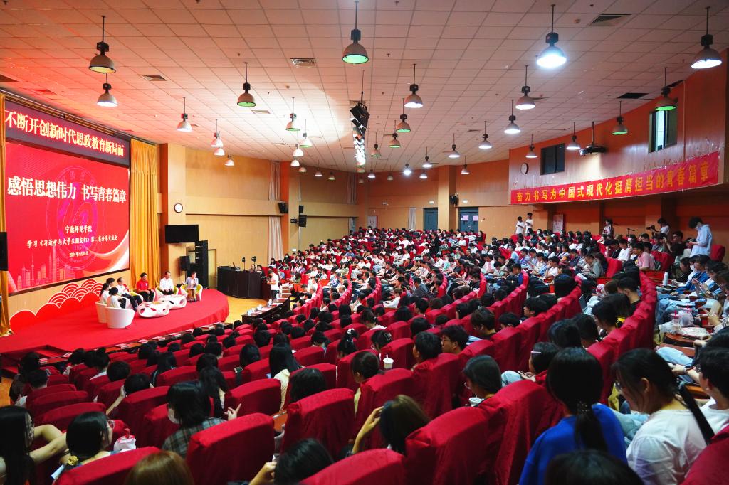 沙龙分享会上互动气氛热烈,掌声不断,台下六名师生代表积极参与互动分享了读书心得。大家纷纷表示要深刻领悟书中蕴含的宝贵思想财富,努力把习近平总书记的殷切嘱托变成美好现实,在以中国式现代化全面推进强国建设、民族复兴伟业的新征程上,交出新时代宁师青年挺膺担当的完美答卷。