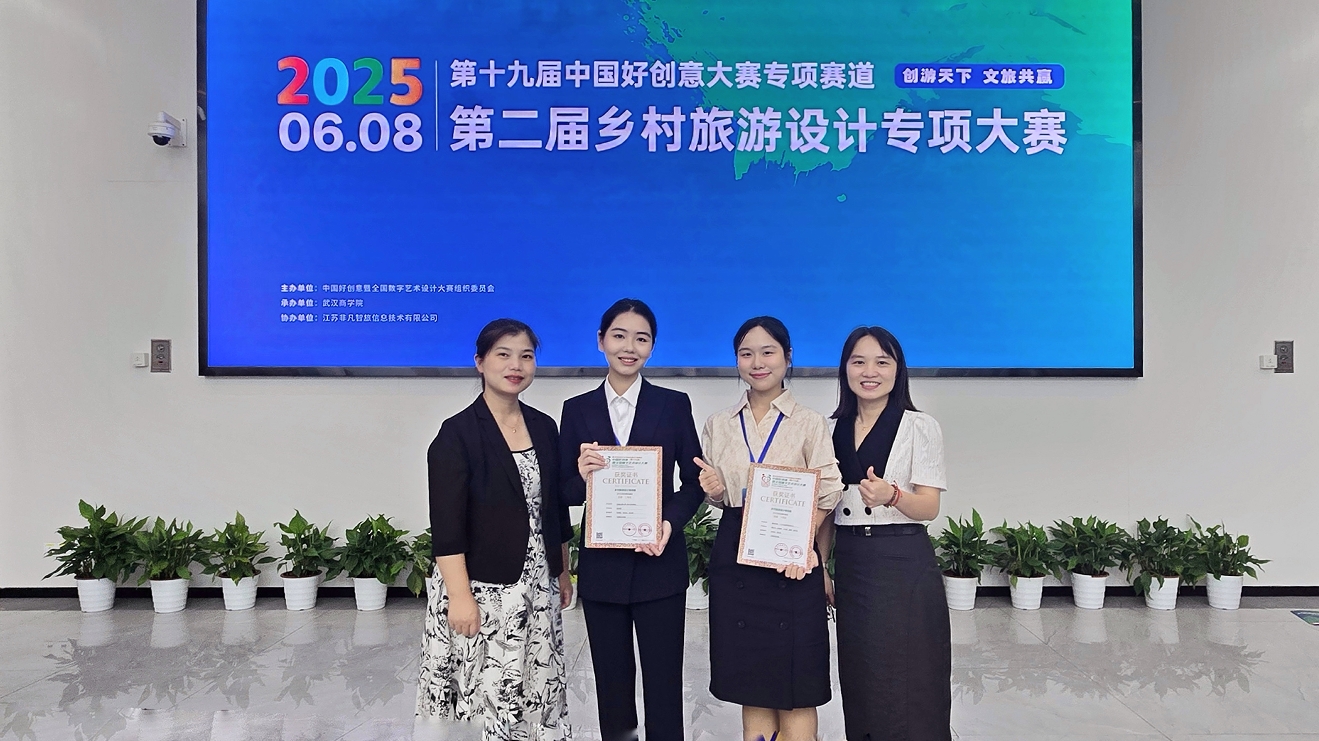 6月7日,第十九届中国好创意暨全国数字艺术设计大赛第二届乡村旅游设计专项赛决赛在武汉举行。我校旅游管理学院学子凭借卓越的创意与扎实的专业能力,在乡村文旅创意传播赛道中脱颖而出,获得一等奖1项、二等奖1项。其中,施欣怡、陈倩婷、王亚柔、黄婷、杨宇宸团队的作品《厦地书香:一个村庄的智慧成长记》荣获一等奖,吴珍妮的作品《步履丈量山海 镜头定格蕉城》荣获二等奖。
