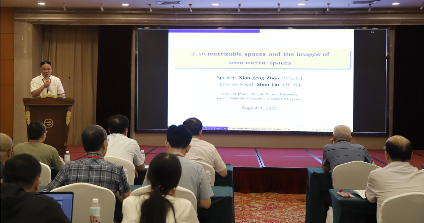 本次研讨会共有9个大会邀请报告,15个学术报告。报告专家与研究生分别报告了各自的研究进展与最新成果,内容涉及一般拓扑学的广义度量空间理论、Domain理论、函数空间理论及拓扑群理论等相关领域。我校林寿、周先耕、平征、刘芳和刘丽5位教师参加了本次大会,其中林寿教授与周先耕教授在会上分别作了题为“映射定理与收敛性”与“I-sn可度量空间及半度量空间的映像”的报告,受到与会专家和师生的关注与好评。