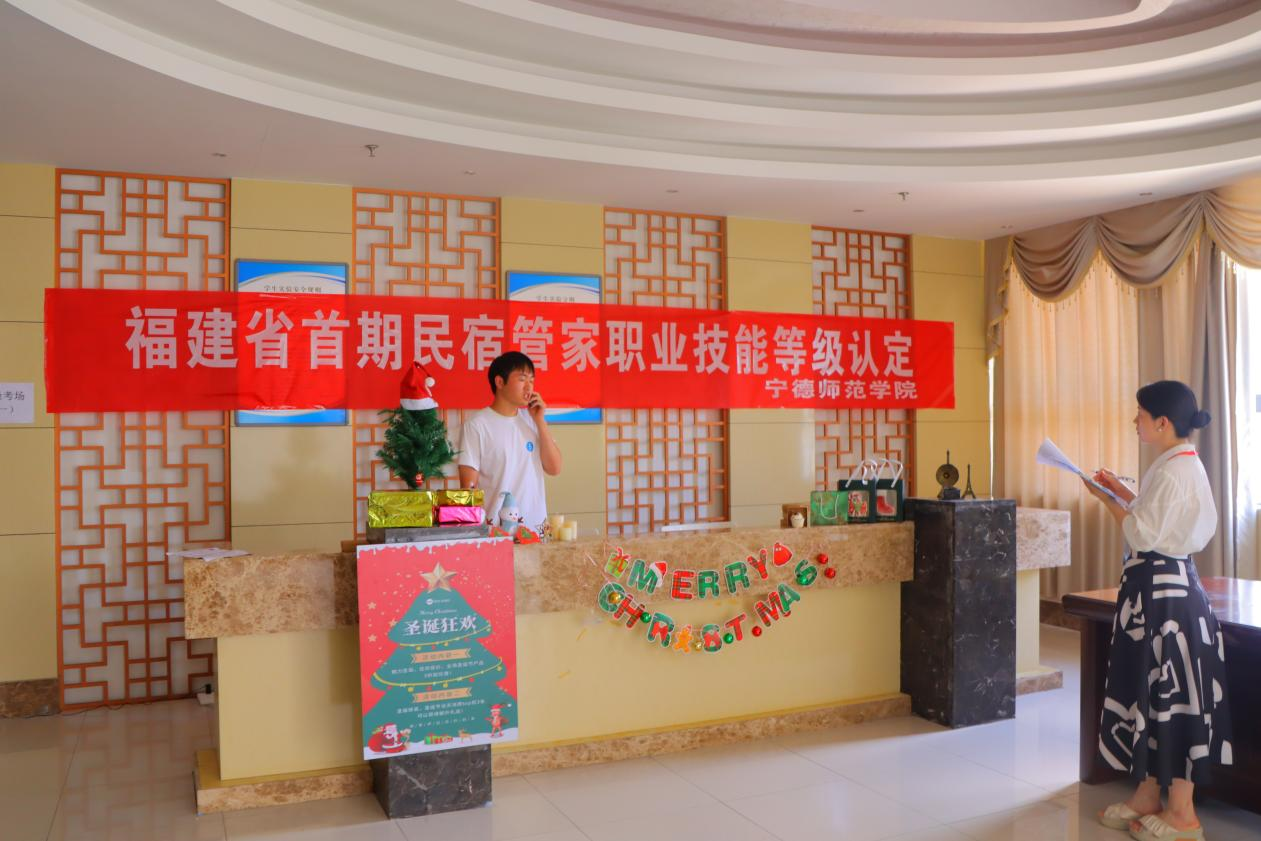 据悉,作为乡村振兴新兴职业,“民宿管家”长期面临“无标准可依、无资质可考”的发展瓶颈。我校主动破题,于2024年9月成功获批福建省首个民宿管家职业技能等级认定资质,实现了该领域“零的突破”。旅游管理学院研发团队深入霞浦、屏南等民宿集聚区,采集200余个真实服务案例,经反复打磨形成全国首个融合闽东特色的题库。其中,“闽东特色文化融入服务”实操题开创性锚定本土需求,兼具实践指导价值。