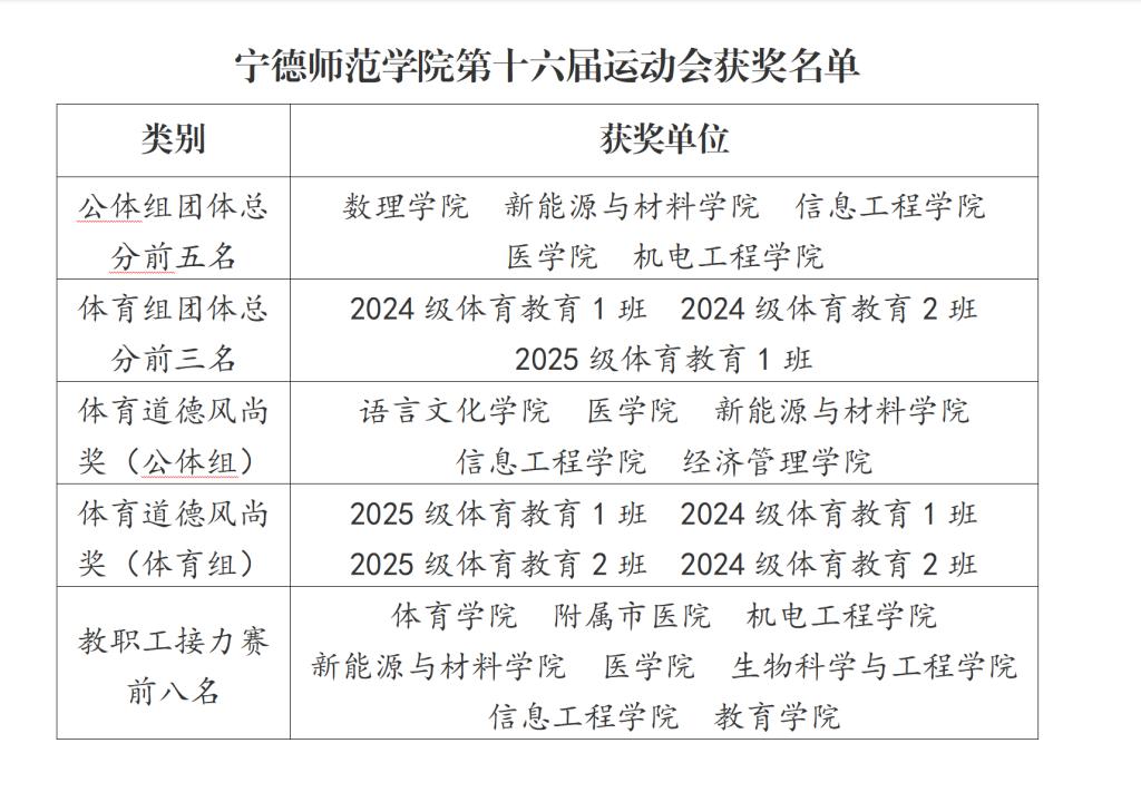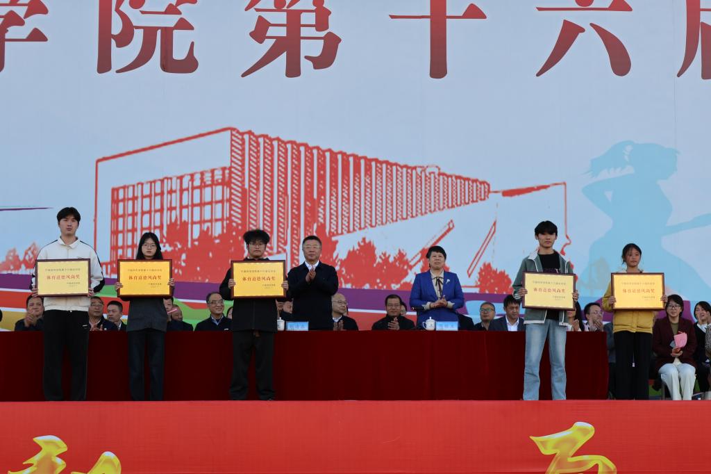 11月21日下午,我校第十六届运动会顺利完成各项赛事,圆满落下帷幕。校党委书记林清泉,副校长陈旺玉出席闭幕式并为获奖单位颁奖。林清泉致闭幕辞,陈旺玉主持闭幕式。各部门负责人、各二级学院党政负责人参加仪式。