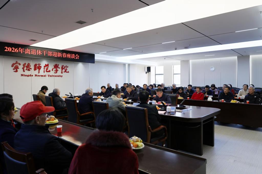 1月16日,我校2026年离退休干部迎新春座谈会在行政楼二楼会议室召开。校党委书记林清泉、校党委副书记江潮炳、副校长颜桂炀,以及相关职能部门负责人与我校30余名离退休教职工代表欢聚一堂,畅谈桑榆情致、共谋学校发展、共抒教育情怀。座谈会由江潮炳主持。