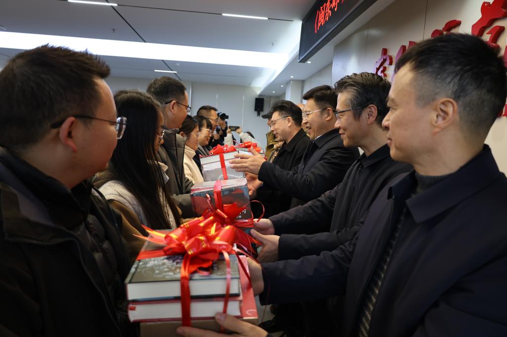 仪式上作者缪小宁深情回顾了《闽东峥嵘岁月》的编撰历程,介绍了本书的主要梗概和风格特点。现场还举行了赠书仪式,向各参会单位代表和我校学生代表赠送书籍。
