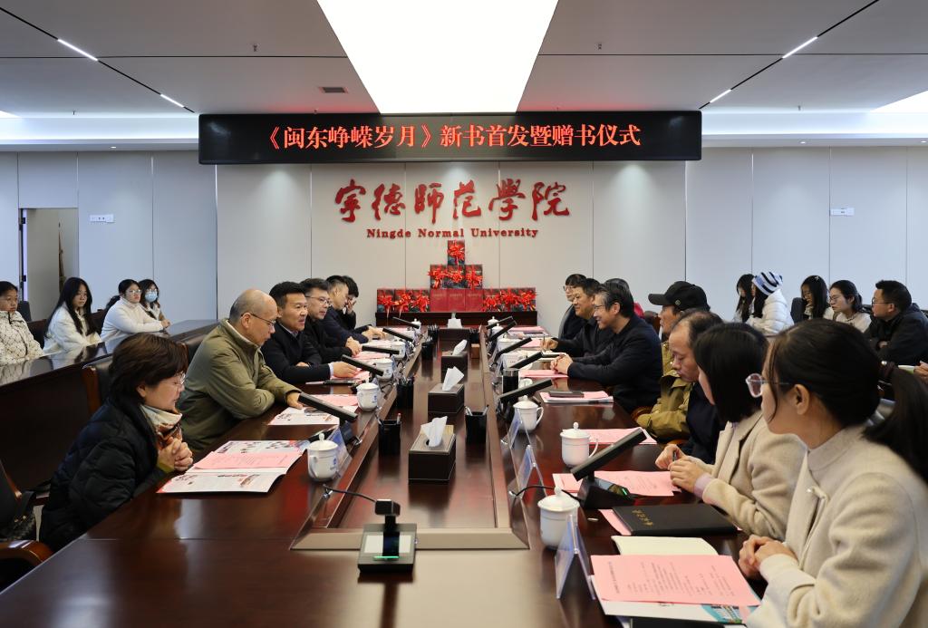 1月9日上午,由我校组织编写、马克思主义学院客座教授缪小宁研究员执笔撰写《闽东峥嵘岁月》新书首发暨赠书仪式在我校东侨校区办公北楼二楼会议室举行。福建省政协副主席、省炎黄文化研究会会长阮诗玮书面致辞,宁德市政协副主席林岩峰,市文联党组书记郑家志,市社科联党组成员、副主席郑可,市委宣传部四级调研员廖南福,市教育局四级调研员陈亚珍,市图书馆副馆长谢佳宏出席仪式。受校党委书记林清泉的委托,校党委副书记江潮炳出席仪式并致辞,党政办、宣传部、教务处、科研处、图书馆、马克思主义学院等单位负责人以及师生代表参加仪式。