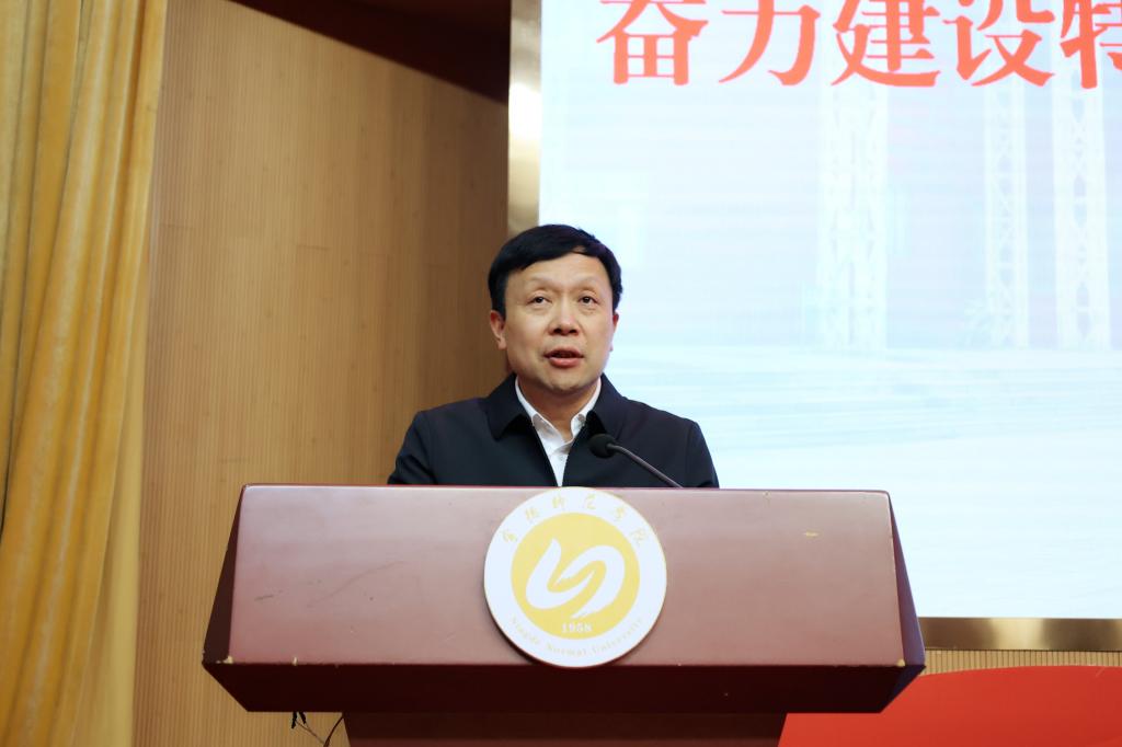 大会号召,全校教职员工要更加紧密地团结在以习近平同志为核心的党中央周围,全面贯彻习近平新时代中国特色社会主义思想,始终牢记习近平总书记“六进宁师”提出的殷殷嘱托,在校党委的坚强领导下,准确把握建设教育强国的形势任务,将学校发展主动融入国家发展大局、融入新福建新宁德建设中,因时而动,乘势而上,推动学校各项事业高质量发展,为奋力建设特色鲜明的一流高水平应用型大学而团结奋斗!