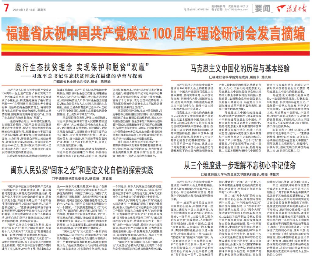 【福建日报】福建省庆祝中国共产党成立100周年理论研讨会发言摘编