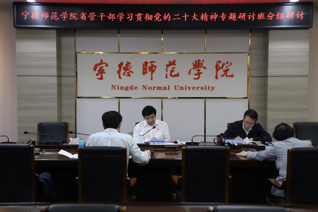 会议强调,要持续把学习宣传贯彻党的二十大精神作为首要政治任务和头等大事,把学习贯彻党的二十大精神作为提高政治站位、增强能力的重要途径,通过学习培训、宣传宣讲、研究阐释,推动党员干部、师生员工持续学、深入学、全面学,不断兴起学习热潮,推动学习贯彻党的二十大精神走深走实。要在全面学习、全面把握、全面落实上下功夫,深刻领会以中国式现代化全面推进中华民族伟大复兴的使命任务,深刻理解高等教育现代化对中国式现代化支撑作用,紧扣党中央决策部署和省委要求,充分发挥学校教师教育与闽东之光协同创新优势,立足区域发展,服务国家需求,加速学校办学体系变革、质量变革和效率变革,加快学校特色发展和全面发展,崇德弘毅、厚学笃行,扎扎实实办好人民满意的教育,推动党的二十大精神在宁师落地生根、开花结果。