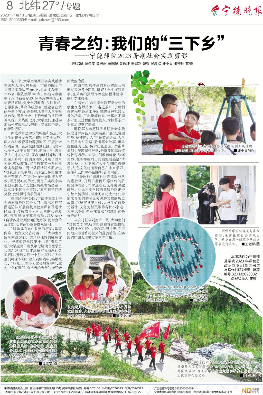 【宁德晚报】青春之约:我们的“三下乡”——宁德师院2023暑期社会实践剪影